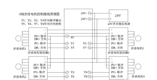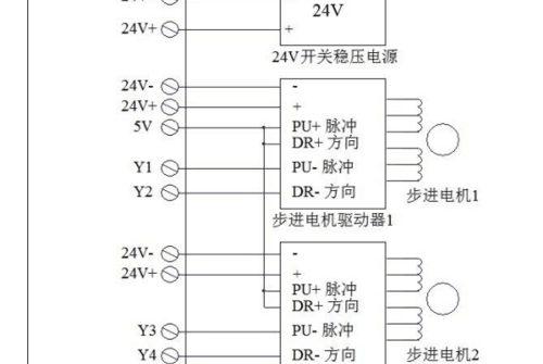單軸接線伺服電機接shu法原理24v連接-,24v+連接+,5v連接pu+脈沖dr+方向,y1連接pu-脈沖y2連接dr-方向。