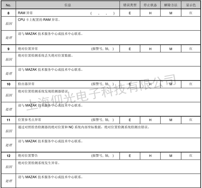 馬扎克數控系統維修報警代碼如下: