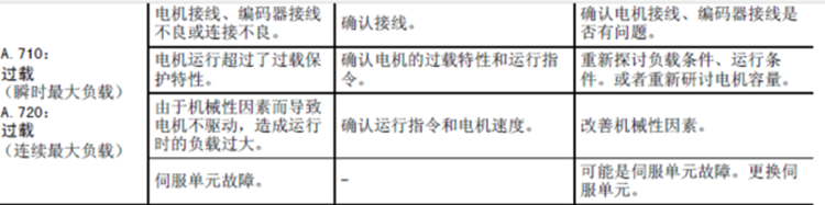 安川伺服驅動器報警代碼710是過載(大負載),電機幾秒至幾十秒過載運行 。