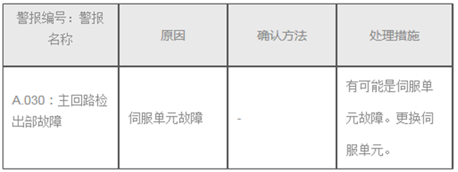 A.b6b A.B6MECHATROLINK通信ASIC異常2 MECHATROLINK 通信ASIC 中發(fā)生了致命的錯誤A.bF0 A.BF 系統(tǒng)0 發(fā)生了伺服單元內(nèi)部程序異常0 DB 停止否