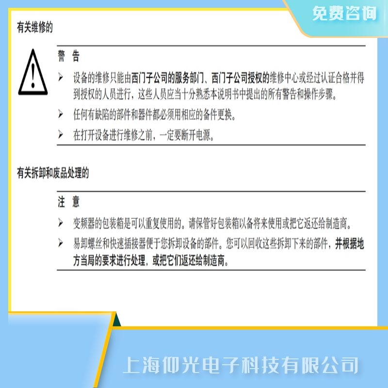 上海西門子系列變頻器有關維修的警告及維修公司電話