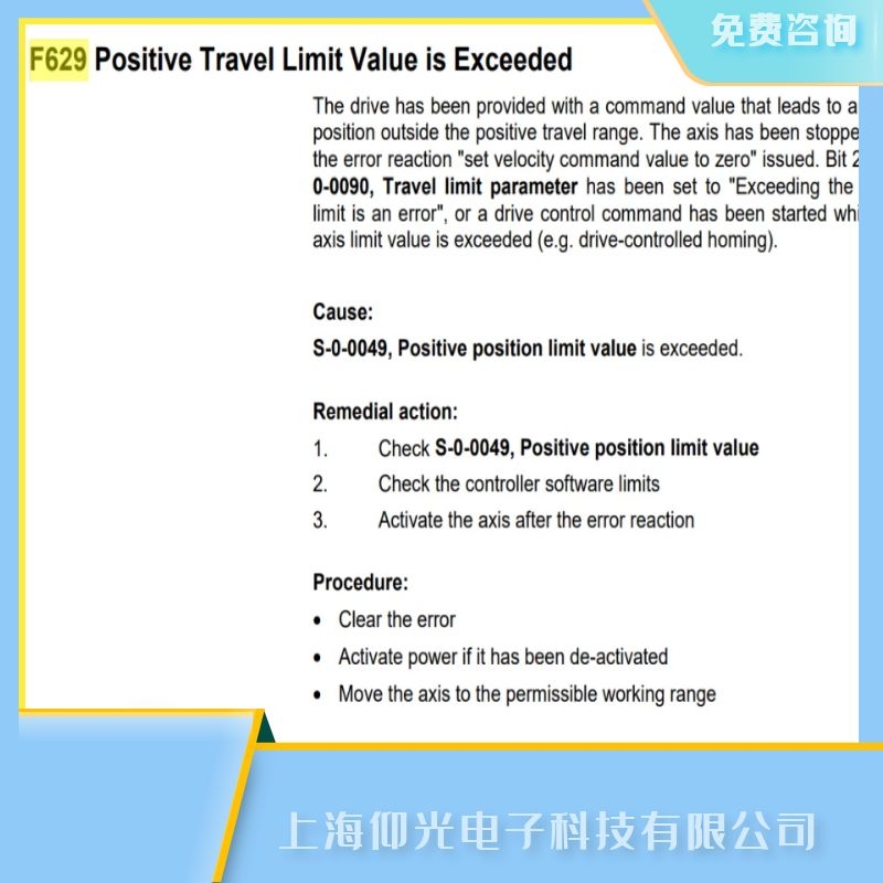 上海仰光電子科技有限公司工程師整合的關于寧波力士樂伺服驅動器維修,力士樂伺服放大器顯示屏不亮維修,力士樂伺服驅動器維修,力士樂伺服放大器維修,力士樂伺服控制器維修,力士樂伺服箱維修,力士樂伺服系統(tǒng)維修,力士樂放大器維修,Rexroth力士樂報F629維修解析,力士樂伺服維修,力士樂電源維修,力士樂伺服電機維修,力士樂伺服馬達維修,力士樂觸摸屏維修等以及其它品牌工控產品維修方法,維修故障代碼解析,維修案例能快速幫你解決一部分簡單故障,無論任何品牌的工控產品由于環(huán)境惡劣,操作不當,使用年限等原因,難免會出現(xiàn)故障,最重要的是及時查找出原因,對應解決故障,及早恢復正常使用上海仰光面向全國,支持順豐到付,擁有全套測試平臺,軟硬件結合,帶載運行,維修速度快,價格低,免費檢測,修好測試后發(fā)出,部分當天修好,修不好不收費用,免費咨詢:13817011982張工.關于寧波Rexroth力士樂伺服驅動器維修,伺服放大器F629超出正行程故障維修解析的技術問題上海仰光電子提供24小時免費咨詢服務.