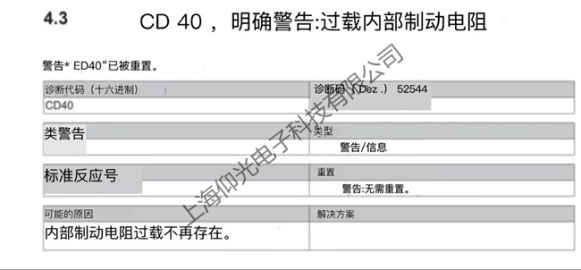 4.3 CD40,清除警告:內部制動電阻過載